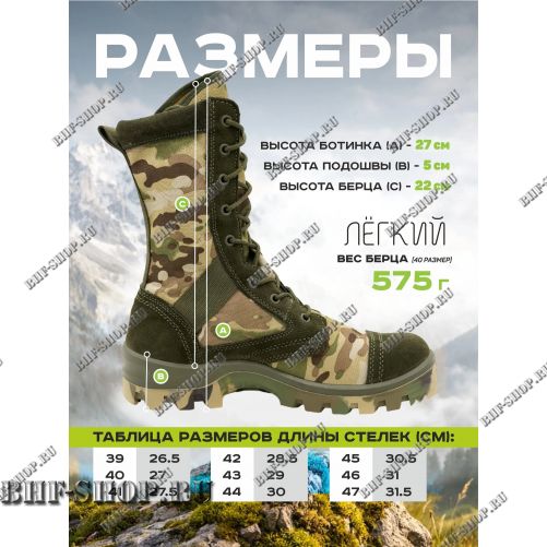 | Разновидность подошвы обуви: | Двухслойная: резина + полиуретан ПУ (±40°С) |