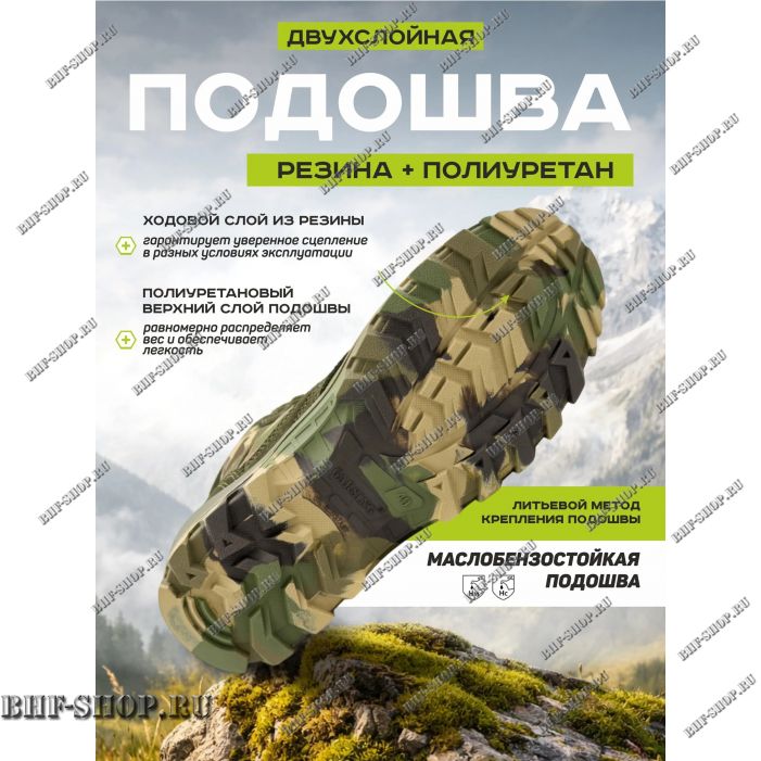 ✅ Подошва: Полиуретан + резина ( обладает маслобензостойкими свойствами и агрессивным протектором для мертвого сцепления с любым грунтом )