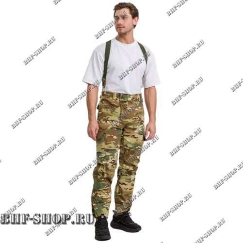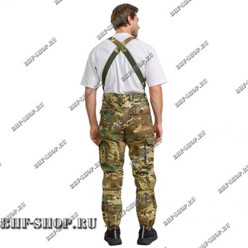 Брюки не уступают куртке по уровню продуманности. Флисовая подкладка сохраняет тепло, а усиления в области колен, таза и паха делают их устойчивыми к нагрузкам и длительному использованию. Утягивающие элементы и резинки обеспечивают комфортную посадку и свободу движений, а наличие помочей добавляет удобства при длительной носке.