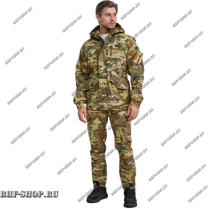Костюм Горка 7П ЛТ NEW в один цвет ВЕЛИКАН летняя Мультикам — это идеальный выбор для тех, кто ценит комфорт и надёжность в любых условиях. Он создан специально для летнего периода и обеспечивает максимальный комфорт во время активного отдыха на природе. Костюм выполнен из высококачественной ткани рип-стоп, которая обладает повышенной прочностью и устойчивостью к разрывам. Это делает его идеальным выбором для любителей рыбалки, охоты, туризма и других видов активного отдыха. Вставки в цвет костюма из ткани. рип-стоп обеспечивают дополнительную прочность и защиту от повреждений. Подкладка отсутствует, что позволяет коже дышать и предотвращает перегрев. Куртка оснащена усиленными вставками на плечах и локтях, которые защищают от возможных повреждений во время активных движений. Утяжка сзади капюшона и по овалу лица позволяет регулировать посадку костюма и обеспечивать максимальный комфорт. Молния с обратным реверсом (трактор) и ветрозащитная планка с супатной застёжкой на канадской ленте обеспечивают надёжную защиту от ветра и дождя. Резинки на рукавах и манжетах, а также утяжки по низу куртки и резинка на талии позволяют регулировать посадку и обеспечивать комфорт во время движения. Липучка для шеврона на левом рукаве позволяет прикрепить необходимые аксессуары. Скрытая вентиляция подмышек на молнии обеспечивает дополнительный комфорт в жаркую погоду. Множество карманов разного типа позволяют удобно разместить все необходимые вещи. Брюки также оснащены множеством полезных функций. Ширинка на молнии с ветрозащитной планкой на двух пуговицах обеспечивает надёжную фиксацию. Шлёвки под ремень позволяют носить брюки с ремнём, что добавляет комфорта и стиля. Усиления под колени и тазовой областью обеспечивают дополнительную защиту от повреждений. Помочи и утягивающие резинки в области колен позволяют регулировать посадку брюк и обеспечивать комфорт во время движения. Резинка по низу брюк и усиления паховой области обеспечивают дополнительную защиту и комфорт. Этот костюм идеально подходит для всех, кто ищет надёжный и удобный костюм для активного отдыха на природе. Быстрая отправка и доставка по всей России делают его доступным для широкого круга покупателей.