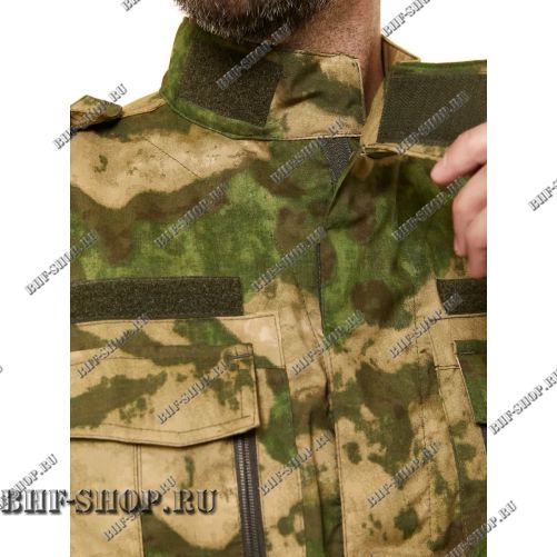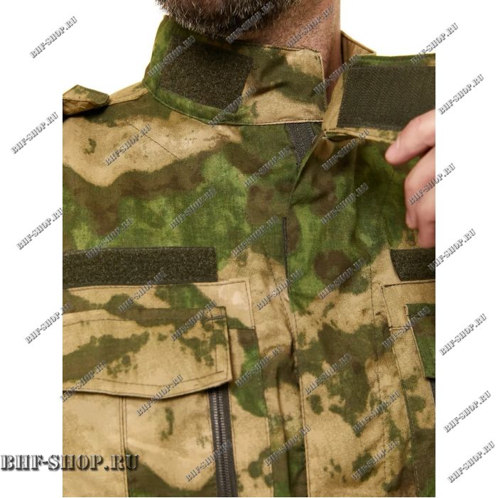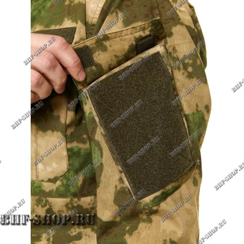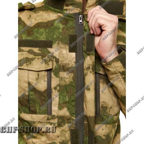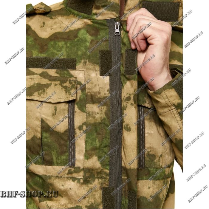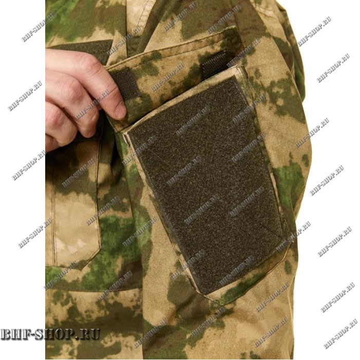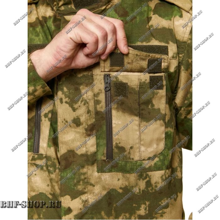 Главное преимущество модели — продуманная система хранения: целых 16 карманов позволяют разместить все необходимое под рукой. Куртка оснащена липучками под шевроны на груди и рукавах, удобными манжетами с регулировкой, а также сочетанием накладных и молниевых карманов для максимальной универсальности. Центральная застежка на молнии с дополнительной фиксацией на липучках и ветрозащитным клапаном надежно защищает от непогоды.