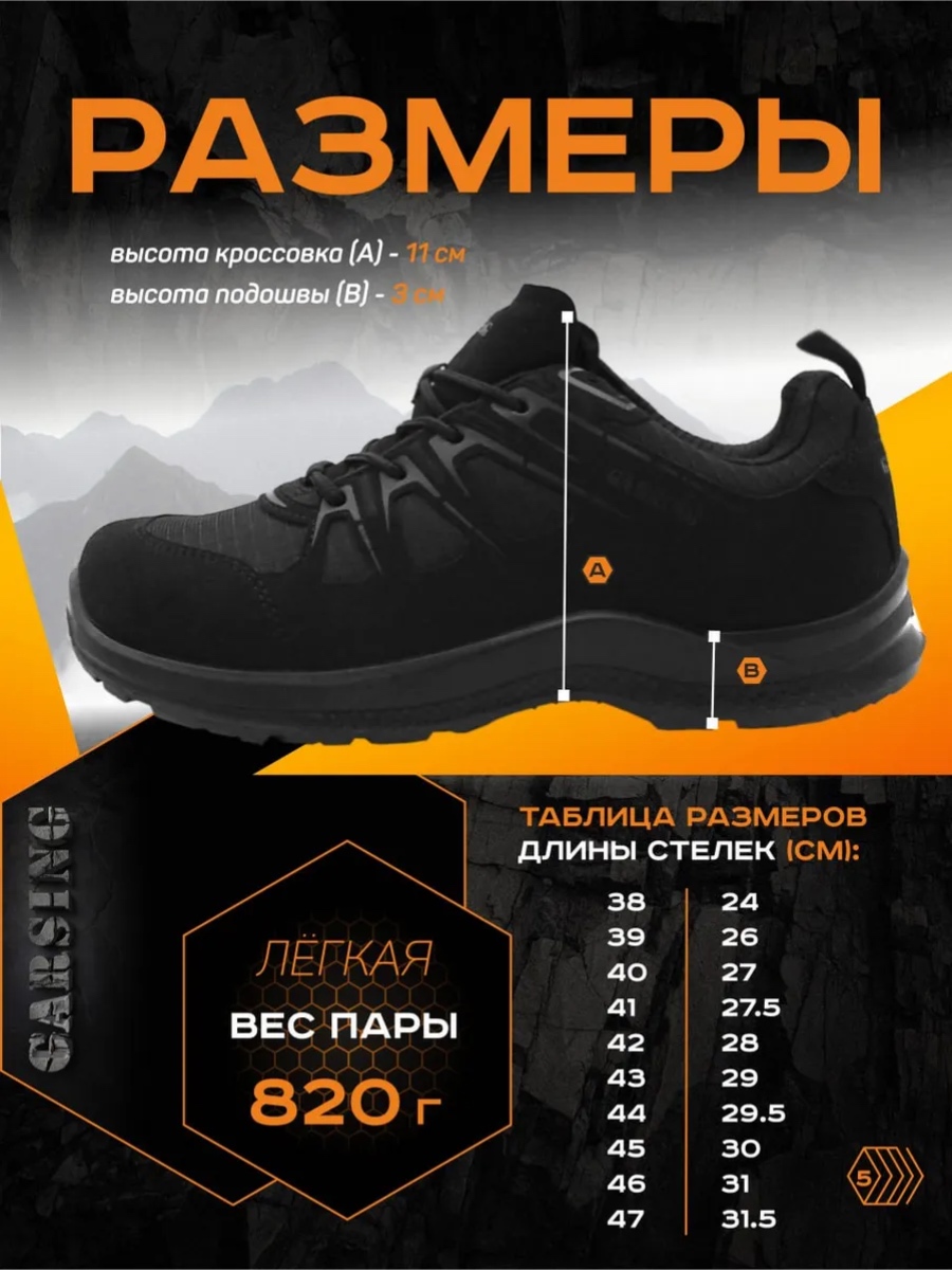 Garsing 189 — это выбор тех, кто ценит практичность, комфорт и уверенность в любой ситуации. Универсальный размерный ряд с 38 по 47 позволяет подобрать идеальную посадку, а продуманная конструкция делает эти кроссовки надежным спутником на каждый день.