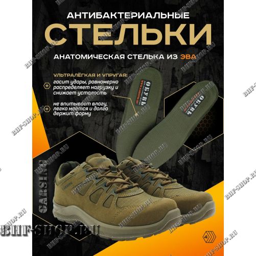✅ Верх ботинка обработан гидрофобной пропиткой, что обеспечивает дополнительную защиту при небольших осадках и случайного попадания воды