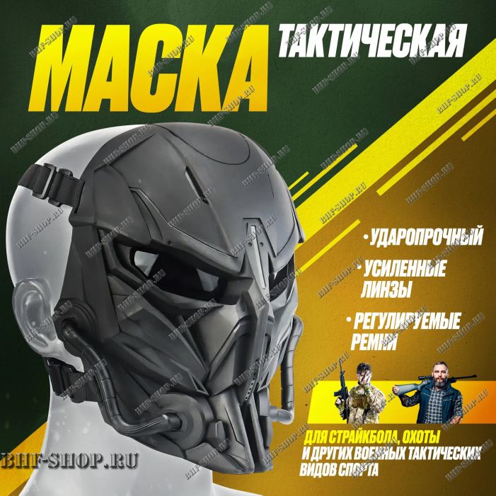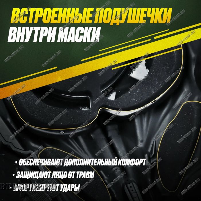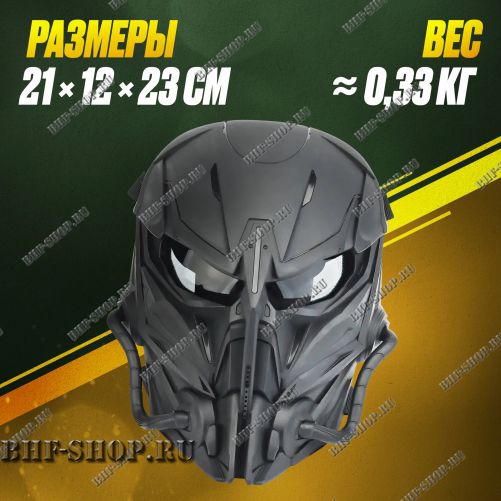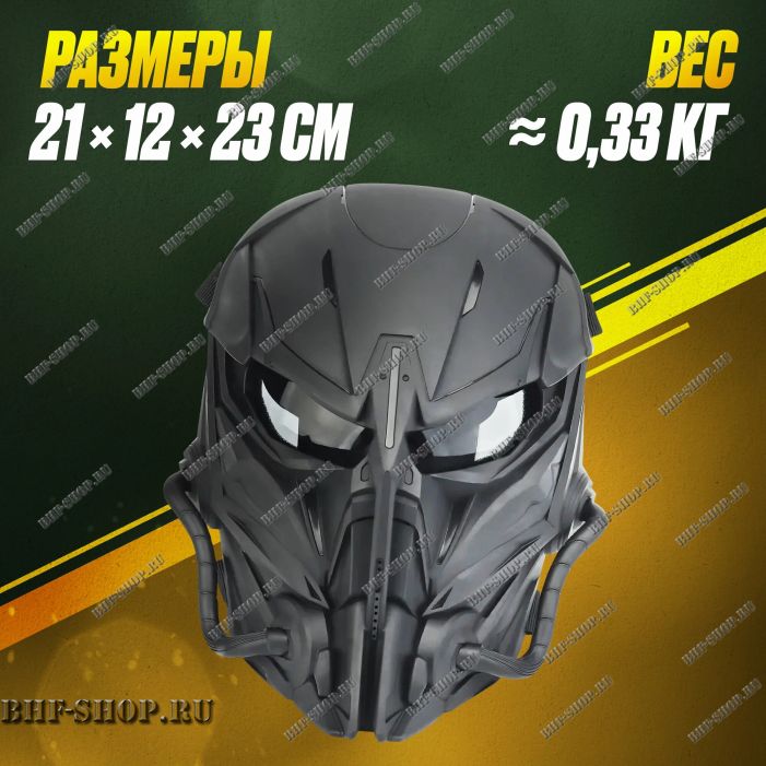 Маска защитная страйкбольная «Чужой Чёрная» — это надёжный и удобный аксессуар для любителей военно-тактических видов спорта. Она изготовлена из высококачественного нейлона, который отличается прочностью и устойчивостью к ударам. Благодаря продуманному дизайну с множеством дышащих отверстий маска обеспечивает плавное дыхание во время активных действий.