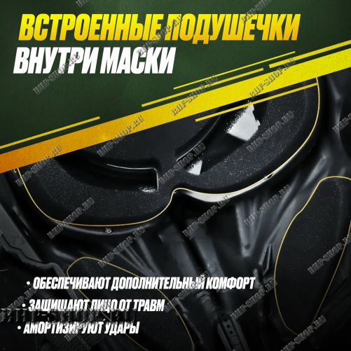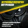 Фиксированная система ремней гарантирует хорошую устойчивость маски на голове, а встроенная удобная подушка снижает воздействие ударов. Размер маски составляет 21 x 12 x 23 см, а вес — 330 грамм, что делает её комфортной для длительного ношения.