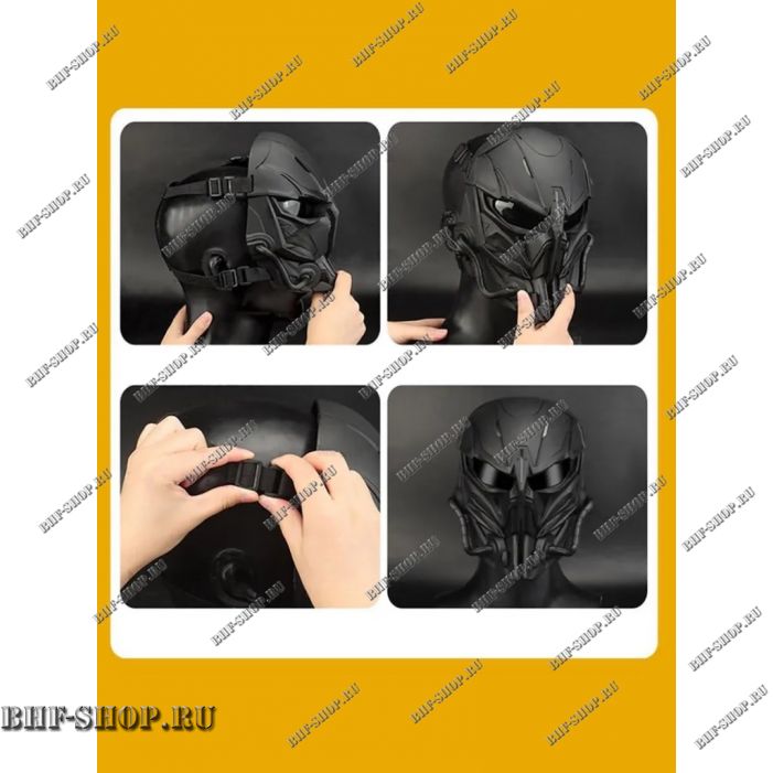 Маска «Чужой Чёрная» может использоваться не только в страйкболе, но и при охоте на открытом воздухе, стрельбе, а также в качестве реквизита для кино и телевидения. В комплекте с маской идёт салфетка для чистки, что позволяет поддерживать её в чистоте и порядке.