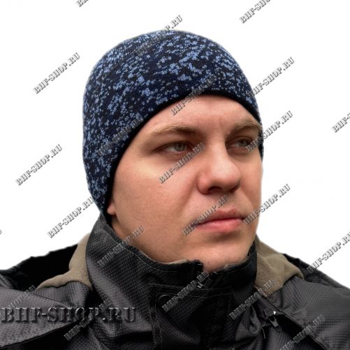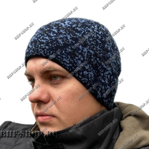 Шапка "1-й вязки" синий пиксель также может использоваться в качестве элемента формы для охраны и военных служб. Она надежно защищает голову от холода и обеспечивает комфорт в течение длительного времени.